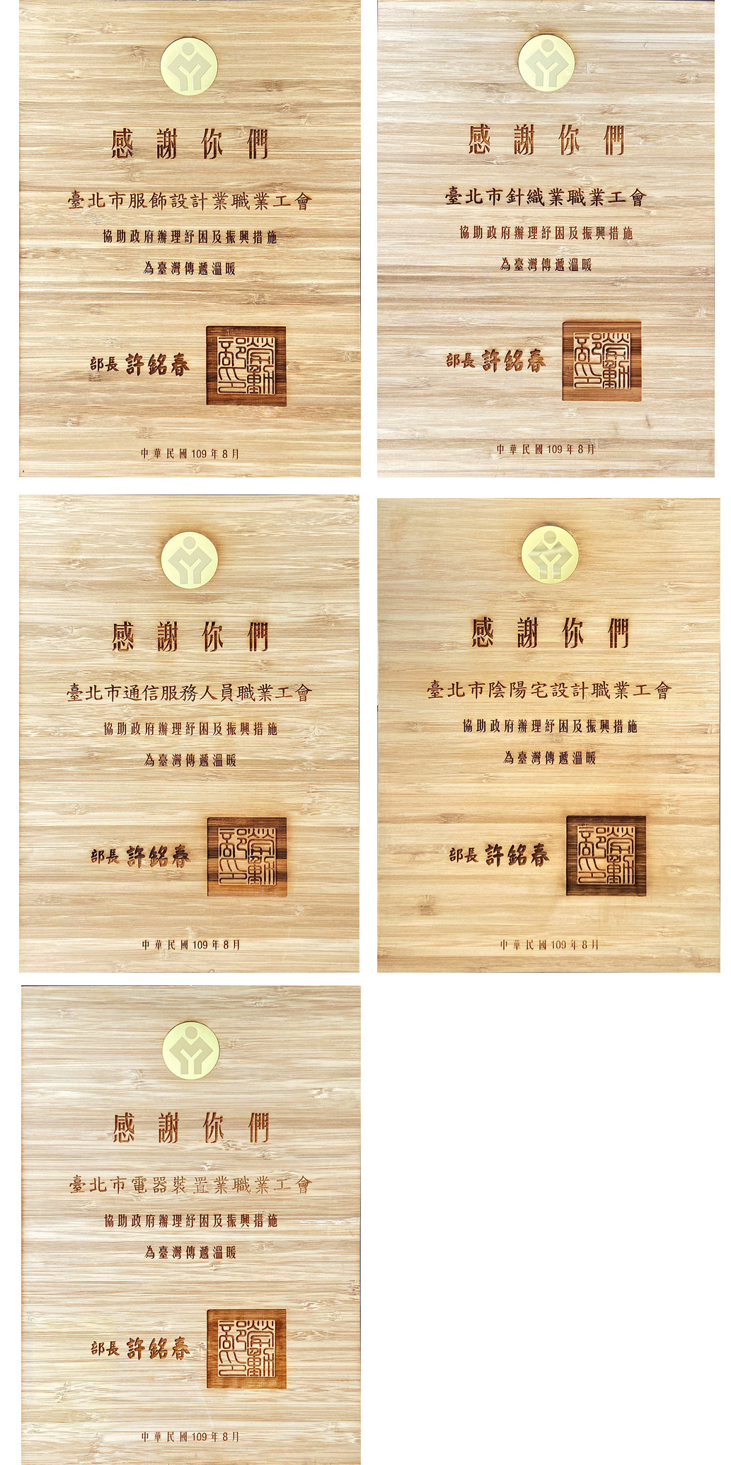 各單位協助政府辦理紓困及振興措施.為臺灣傳遞溫暖,獲得獎狀一幀。